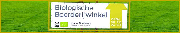 "In onze boerderijwinkel verkopen wij iedere vrijdagmiddag en zaterdag biologische groenten en fruit van het seizoen; rechtstreeks van onze akkers en die van collega boeren uit de buurt. Maar ook lekkers van verder weg. U kunt rekenen op smakelijke & gezonde biologische groenten en fruit." (doelwyck.nl)