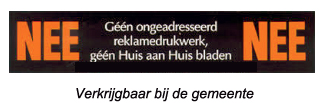 Bij je gemeente kun je een nee-sticker halen voor op de brievenbus. Of een nee-ja sticker als je wel een Huis aan Huis blad wenst.